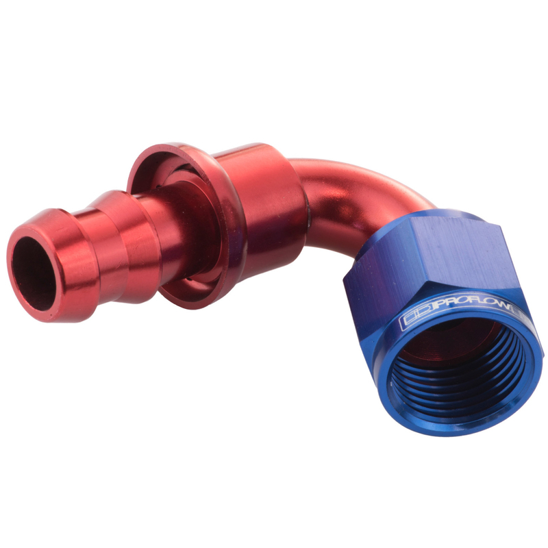 Proflow 120 Degree Push Lock Hose End Barb 1/4'' To Female -04AN